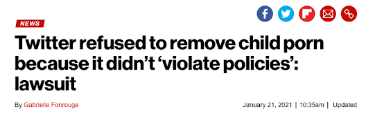 Mas enquanto a companhia de Silicon Valley acha que o livre discurso deve ser censurado e persegue activamente os dissidentes à narrativa woke, o seu escrúpulo censório não se estende equitativamente a outras áreas da actividade social, se calhar mais perniciosas, se calhar criminosas, como por exemplo, a pornografia infantil: